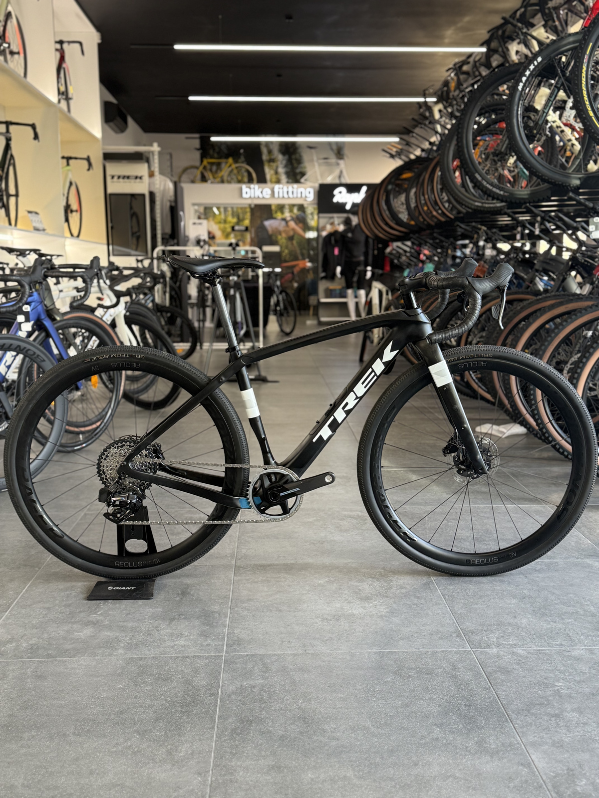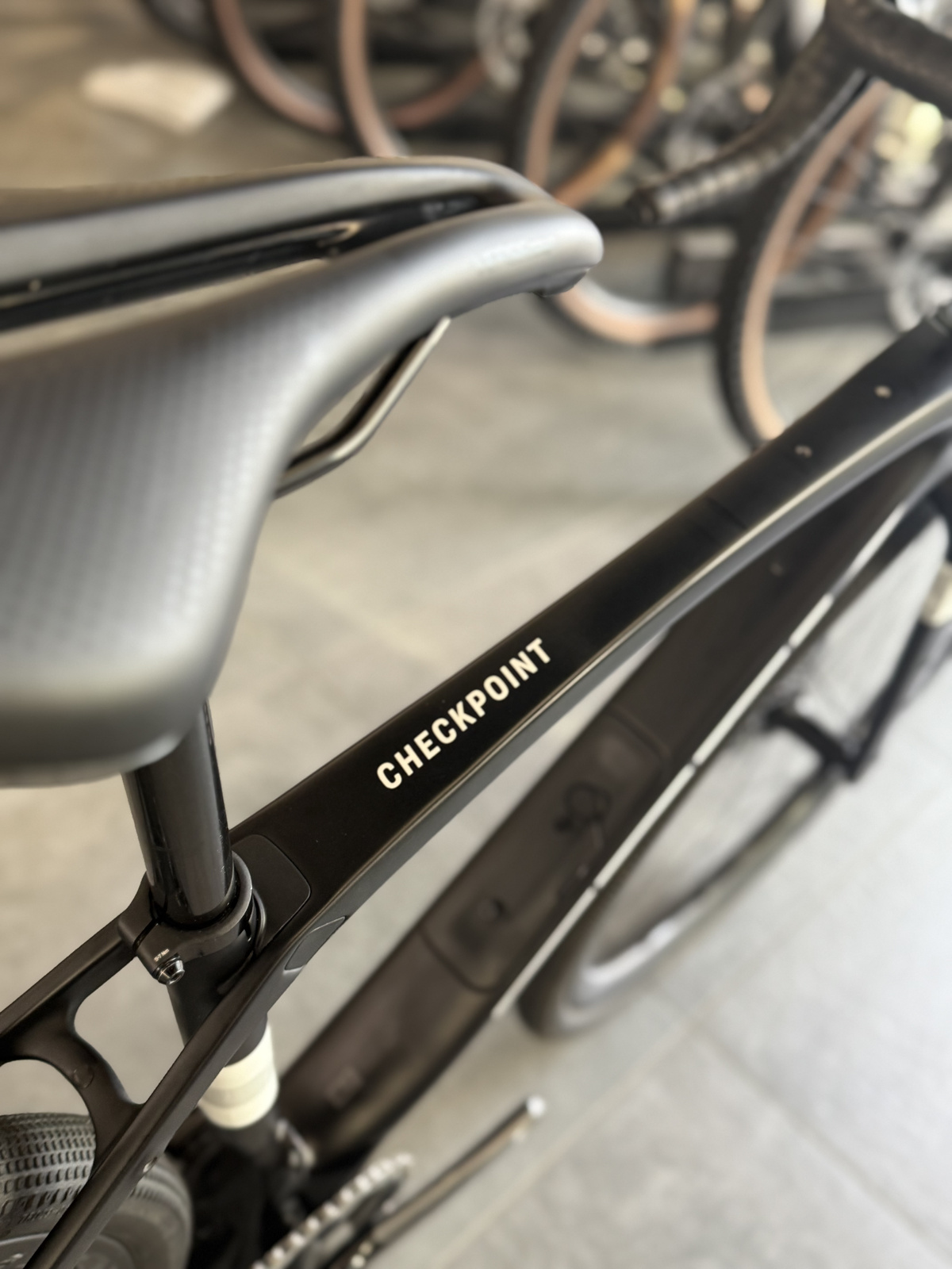 - Trek Checkpoint, full carbon, tapered carbon steerer, rack mounts, fender mounts, flat mount disc, 12x100mm thru axle