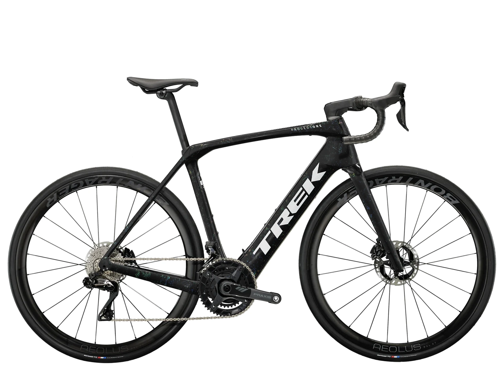 - Domane+ z włókna węglowego, zwężana rura sterowa z włókna węglowego, wewnętrzne prowadzenie przewodów hamulca, mocowania błotników, hamulce tarczowe flat mount, oś przelotowa 12x100 mm