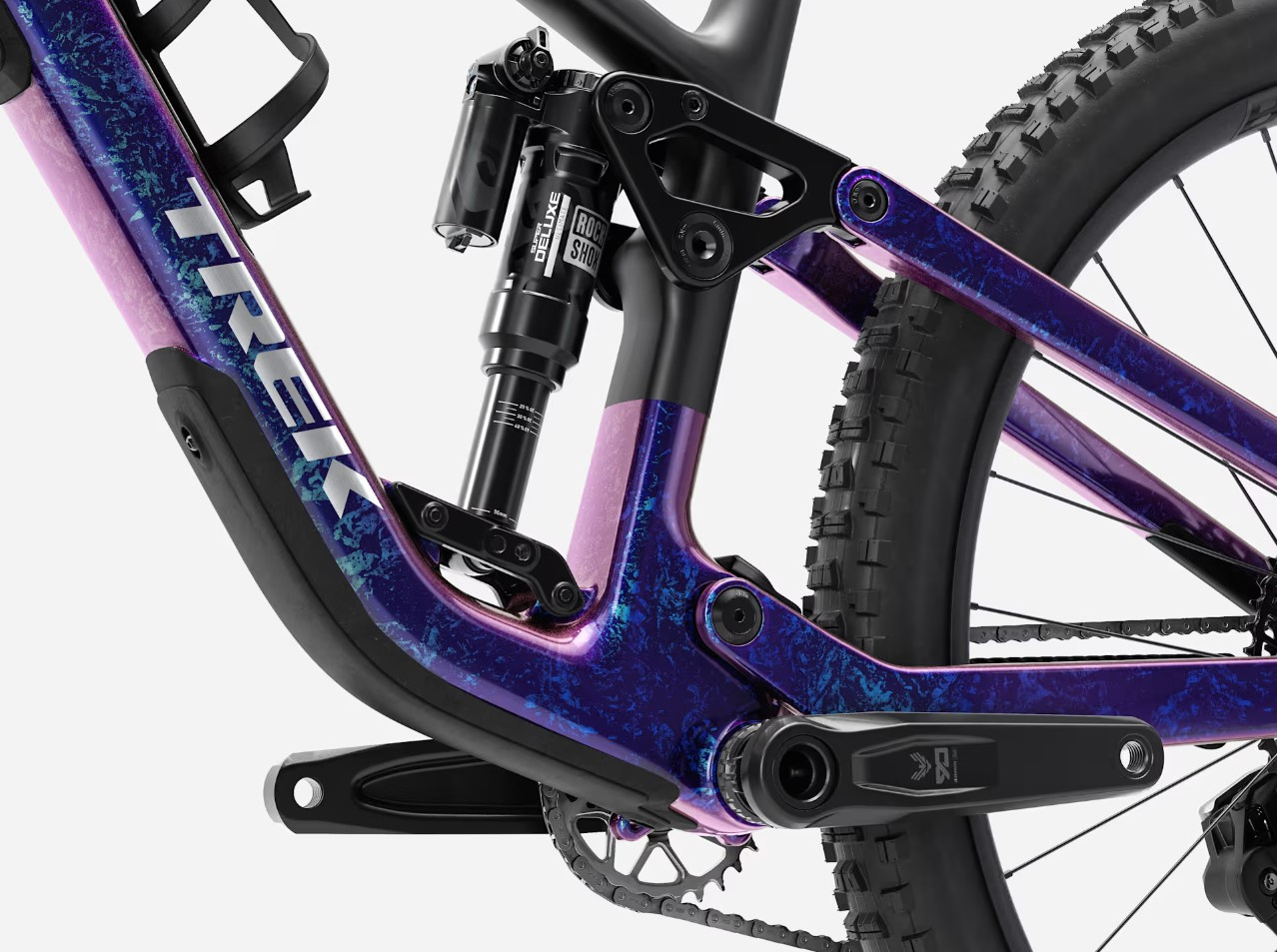 - OCLV Mountain Carbon, internal storage, ZS headset, adjustable leverage rate, guided internal routing, interchangeable alloy rocker link, interchangeable lower shock mount, downtube guard, shuttle guard, BSA 73, ISCG 05, ABP, UDH, Boost148, adaptable travel 145mm-160mm