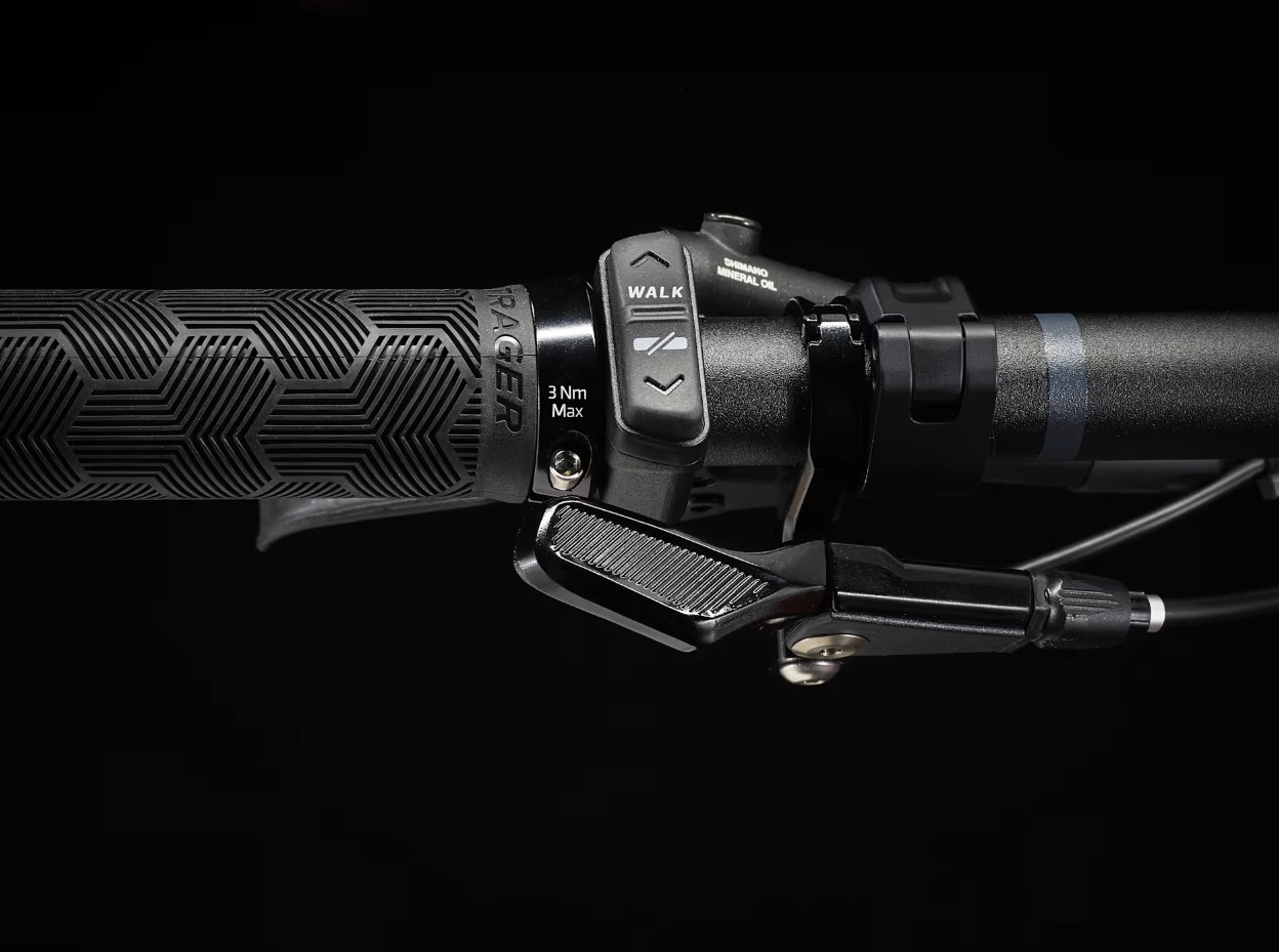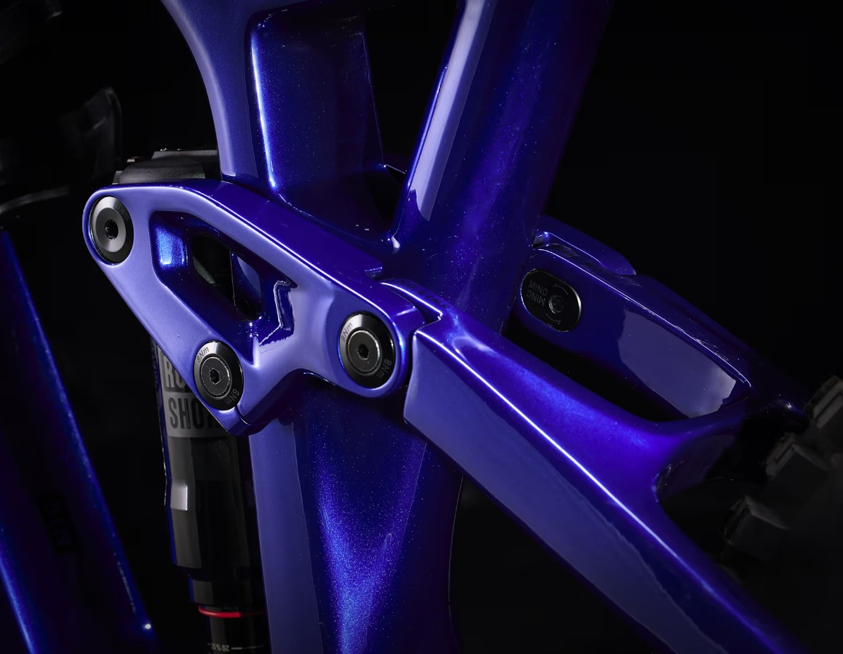 Rama z włókna węglowego OCLV Mountain, wyjmowany akumulator, wewnętrzne prowadzenie linek, łącznik wahacza ze stopu, rura podsiodłowa 34,9 mm, uchwyt górnej prowadnicy łańcucha, linia łańcucha 55 mm, Mino Link, ABP, Boost148, UDH, 140 mm skoku