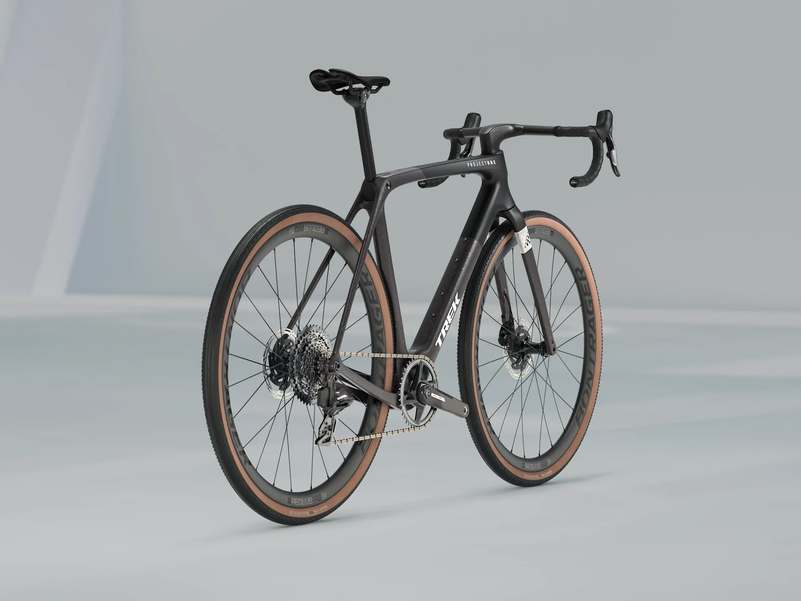 Lekka i aerodynamiczna rama z włókna węglowego OCLV serii 800 z komfortową technologią IsoSpeed oraz mnóstwem mocowań, by zabrać to, co potrzebne na wyścig. Koła z włókna węglowego Bontrager Aeolus RSL Pro 3V oraz karbonowa kierownica z mostkiem Trek Aero RSL zapewniają lekkość i zwinność. Do tego jeszcze dodaliśmy napęd SRAM RIVAL AXS z bezprzewodowym przerzucaniem, stworzony na trudniejsze trasy.