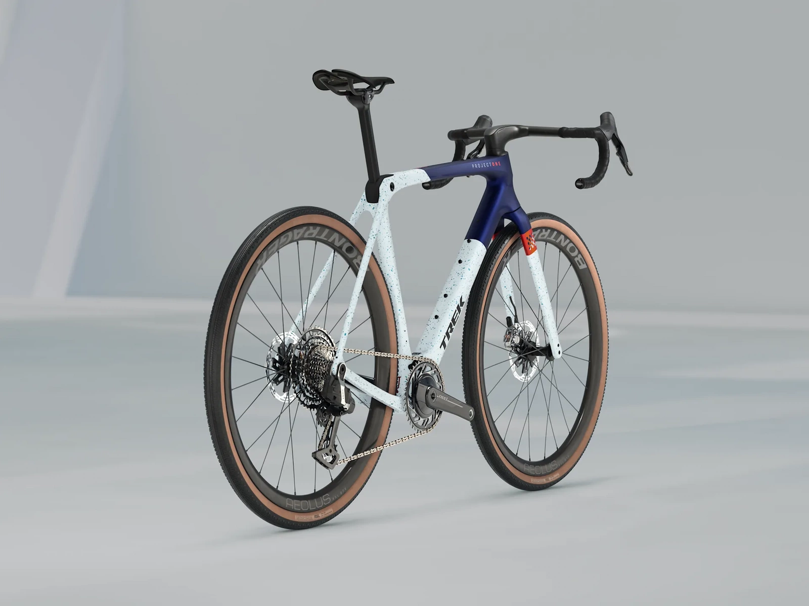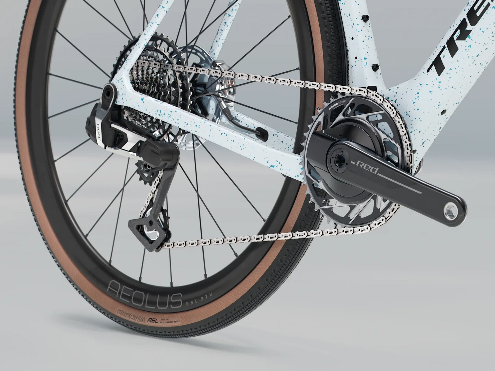 Lekka i aerodynamiczna rama z włókna węglowego OCLV serii 800 z komfortową technologią IsoSpeed oraz mnóstwem mocowań, by zabrać to, co potrzebne na wyścig. Koła z włókna węglowego Bontrager Aeolus RSL 37V oraz karbonowa kierownica z mostkiem Trek Aero RSL zapewniają lekkość i zwinność. Do tego jeszcze dodaliśmy najlżejszy i najbardziej ergonomiczny napęd SRAM RED XPLR AXS z bezprzewodowym przerzucaniem, stworzony na trudniejsze trasy.