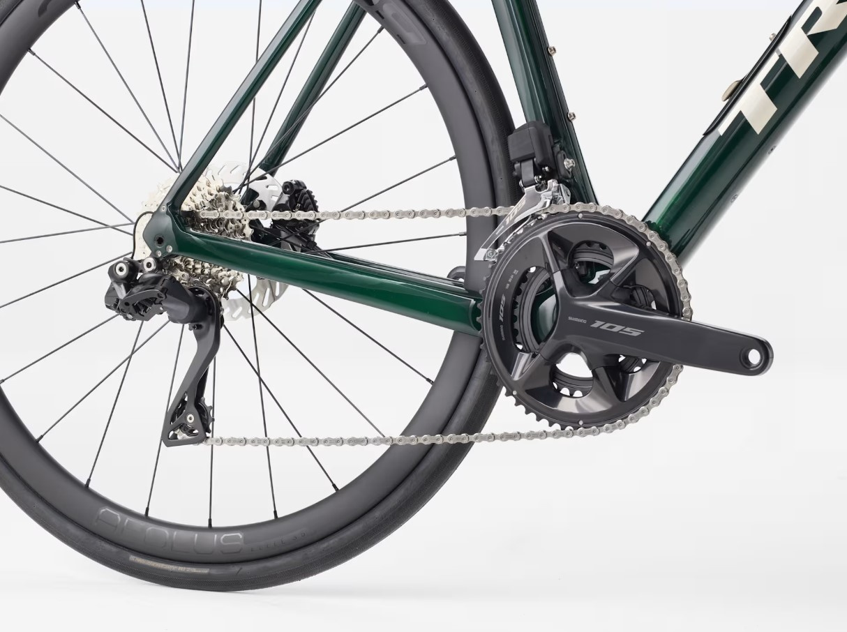 Lekka i ulepszona rama z włókna węglowego OCLV Serii 500 z wygładzającym trasę tylnym rozdzielaczem IsoSpeed. Sterowany elektronicznie napęd 2x12 Shimano 105 Di2 i mocne hamulce tarczowe flat mount. Ponadto szerokie, przystosowane do montażu bezdętkowego koła Bontrager Paradigm Comp 25, schowek w ramie oraz wewnętrzne prowadzenie linek i przewodów poprawiają możliwości i wygląd roweru. Dodatkowe mocowania na rurze górnej pozwalają zamontować torby na dłuższe przejażdżki bez nieporęcznych pasków i linek.
