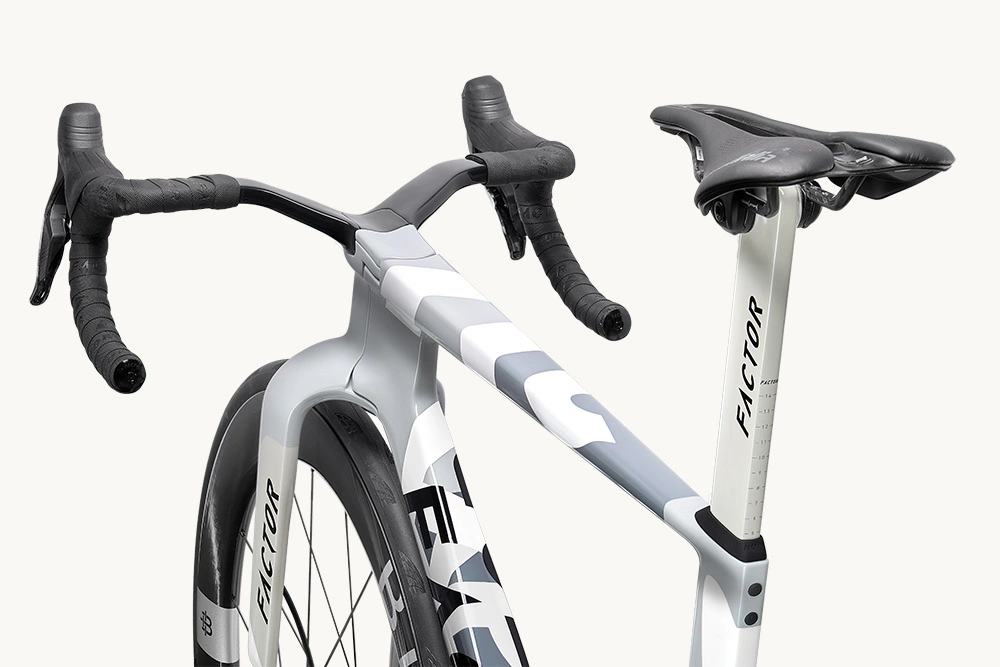 Factor ONE prezentuje zupełnie nowe spojrzenie na projektowanie współczesnych rowerów wyścigowych. Kolarstwo najwyższego szczebla ewoluowało: zawodnicy siedzą bardziej z przodu, używają węższych kierownic, krótszych korb, szerszych opon i przyjmują bardziej aerodynamiczne pozycje niż kiedykolwiek wcześniej. ONE projektowano pod te realia od pierwszego szkicu – a nie dopasowywano do nich post factum.