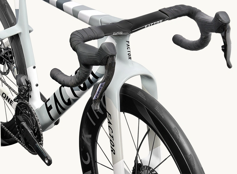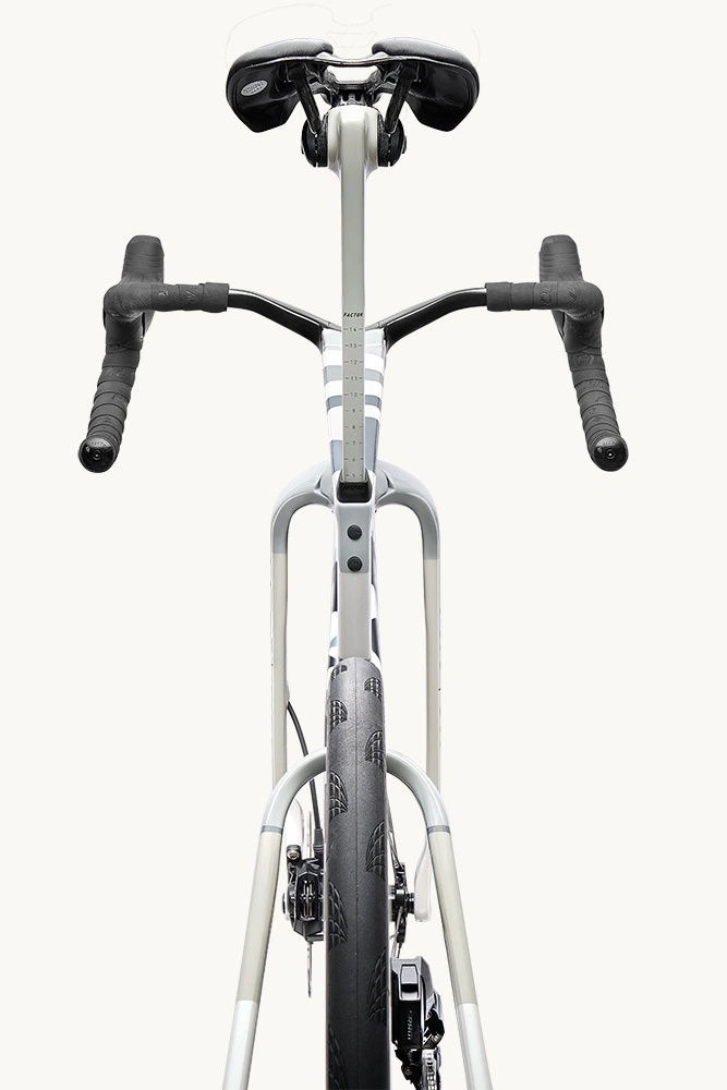 Zespół inżynierów Factora przyjął jako fakt, że dzisiejsi kolarze przesuwają granice pozycji, które jeszcze niedawno uchodziły za ekstremalne. Dzięki oddzieleniu mocowania kierownicy od osi rury sterowej, ONE pozwala uzyskać długość kokpitu, która wcześniej wymagałaby zastosowania skrajnie długich (tym samym mniej stabilnych) mostków. Zmieniony drop suportu przywraca równowagę prowadzenia zaburzoną przez krótsze korby i nowoczesne szerokości opon, dzięki czemu rower pozostaje stabilny nawet przy dużych prędkościach.