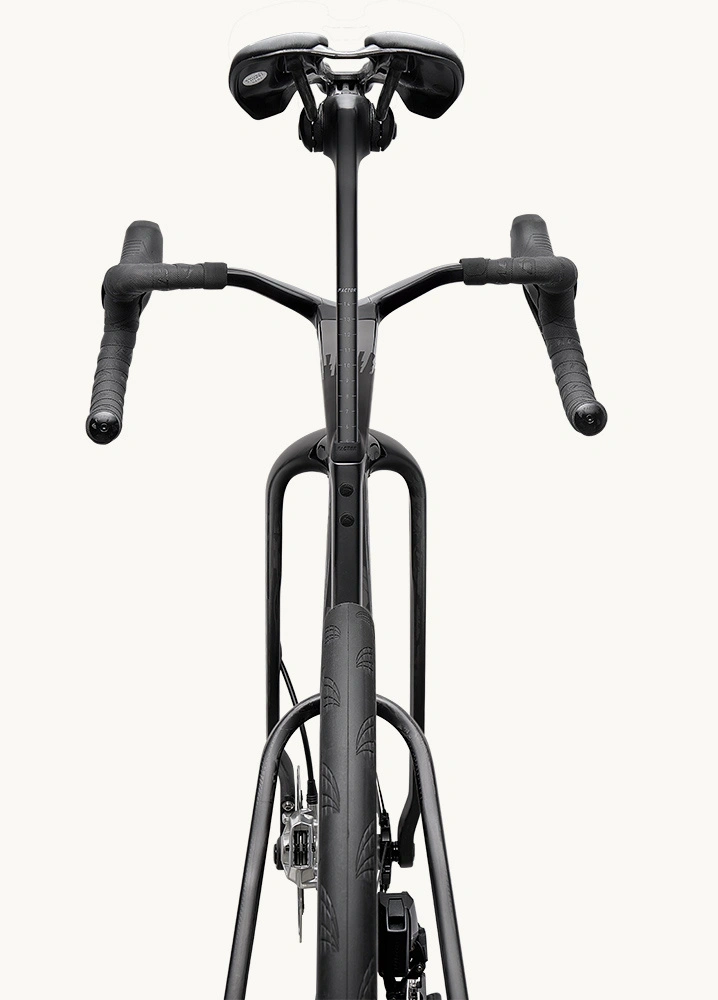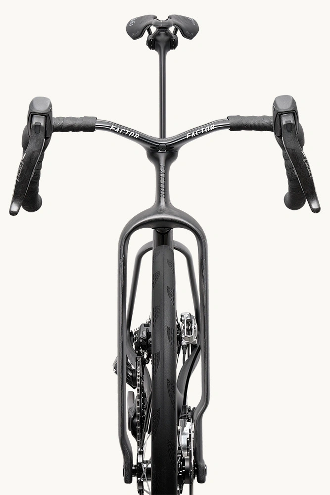 Factor ONE prezentuje zupełnie nowe spojrzenie na projektowanie współczesnych rowerów wyścigowych. Kolarstwo najwyższego szczebla ewoluowało: zawodnicy siedzą bardziej z przodu, używają węższych kierownic, krótszych korb, szerszych opon i przyjmują bardziej aerodynamiczne pozycje niż kiedykolwiek wcześniej. ONE projektowano pod te realia od pierwszego szkicu – a nie dopasowywano do nich post factum.
