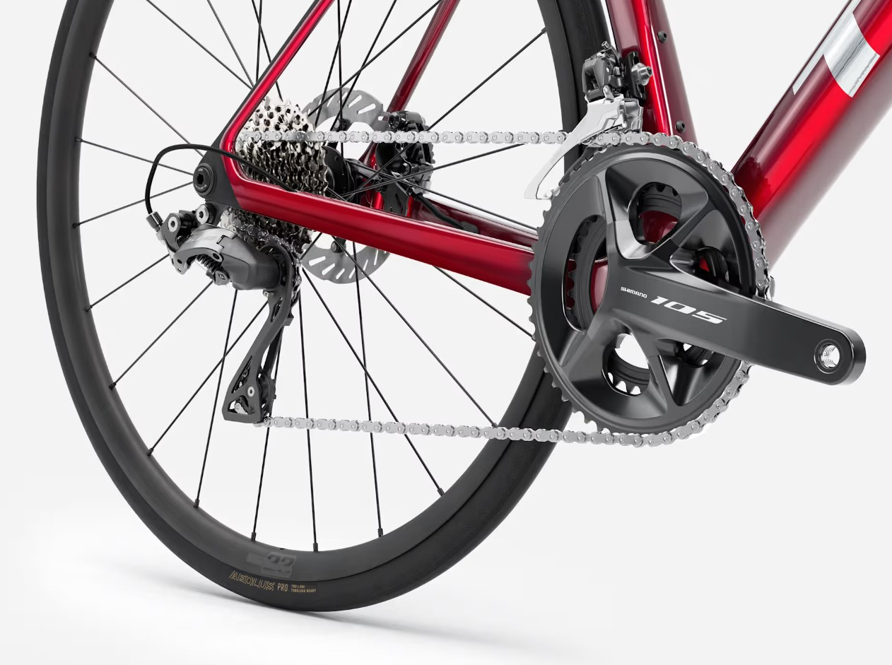 Superlekka rama z włókna węglowego OCLV 500 z aerodynamicznymi rurami oraz technologia komfortu IsoFlow. Sterowany elektronicznie napęd 2x12 Shimano 105 Di2 gwarantujący płynną pracę, a wszystko dzięki technologiom pochodzącym z topowych grup. Jako wisienka na torcie – z włókna węglowego zamontowane bezdętkowego Bontrager Aeolus Elite 50.
