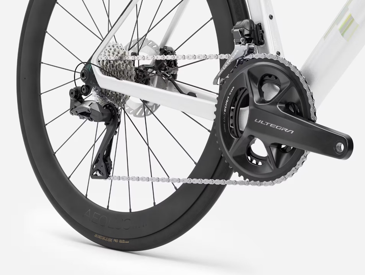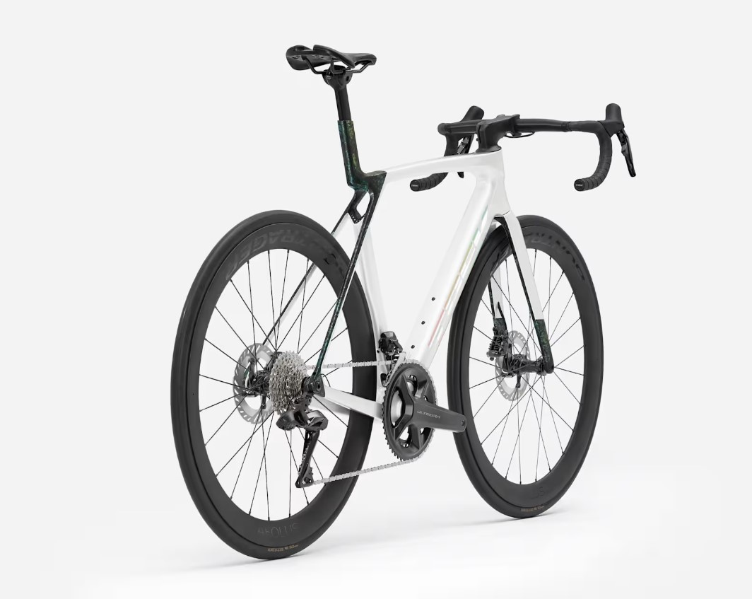 Superlekka rama z włókna węglowego OCLV 500 z aerodynamicznymi rurami oraz technologia komfortu IsoFlow. Grupa 2x12 Shimano Ultegra Di2 zapewnia błyskawiczną zmianę biegów i pełne możliwości dostosowania do potrzeb. Wisienka na torcie: zamontowane bezdętkowe koła z włókna węglowego Bontrager Aeolus Elite 50.