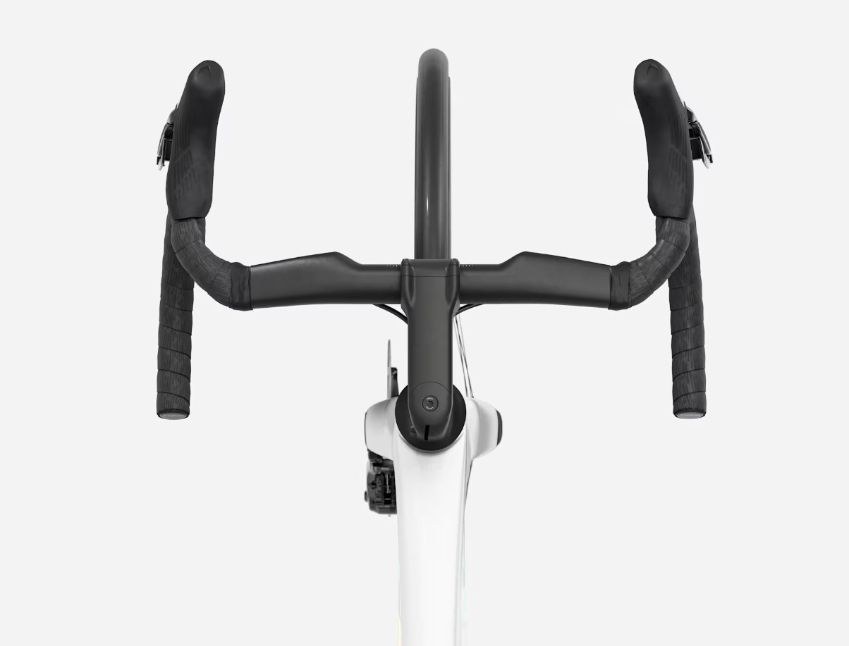 Bontrager RSL Aero, włókno węglowe OCLV, 31,8 mm, wewnętrzne prowadzenie przewodów Di2, zasięg 80 mm, głębokość 124 mm, szerokość przy klamkomanetkach 39 cm, szerokość w chwycie dolnym 42 cm