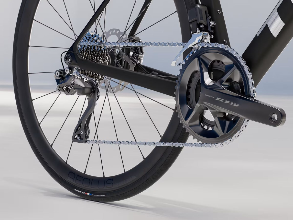 Włókno węglowe OCLV Serii 500, kształty rur Full System Foil, rura podsiodłowa IsoFlow, system sterów RCS, prowadzenie przewodów elektronicznych lub linek, aerodynamiczna prowadnica łańcucha przystosowana do demontażu, suport T47, hamulce tarczowe flat mount, uniwersalny hak przerzutki UDH, sztywna oś przelotowa 142x12 mm