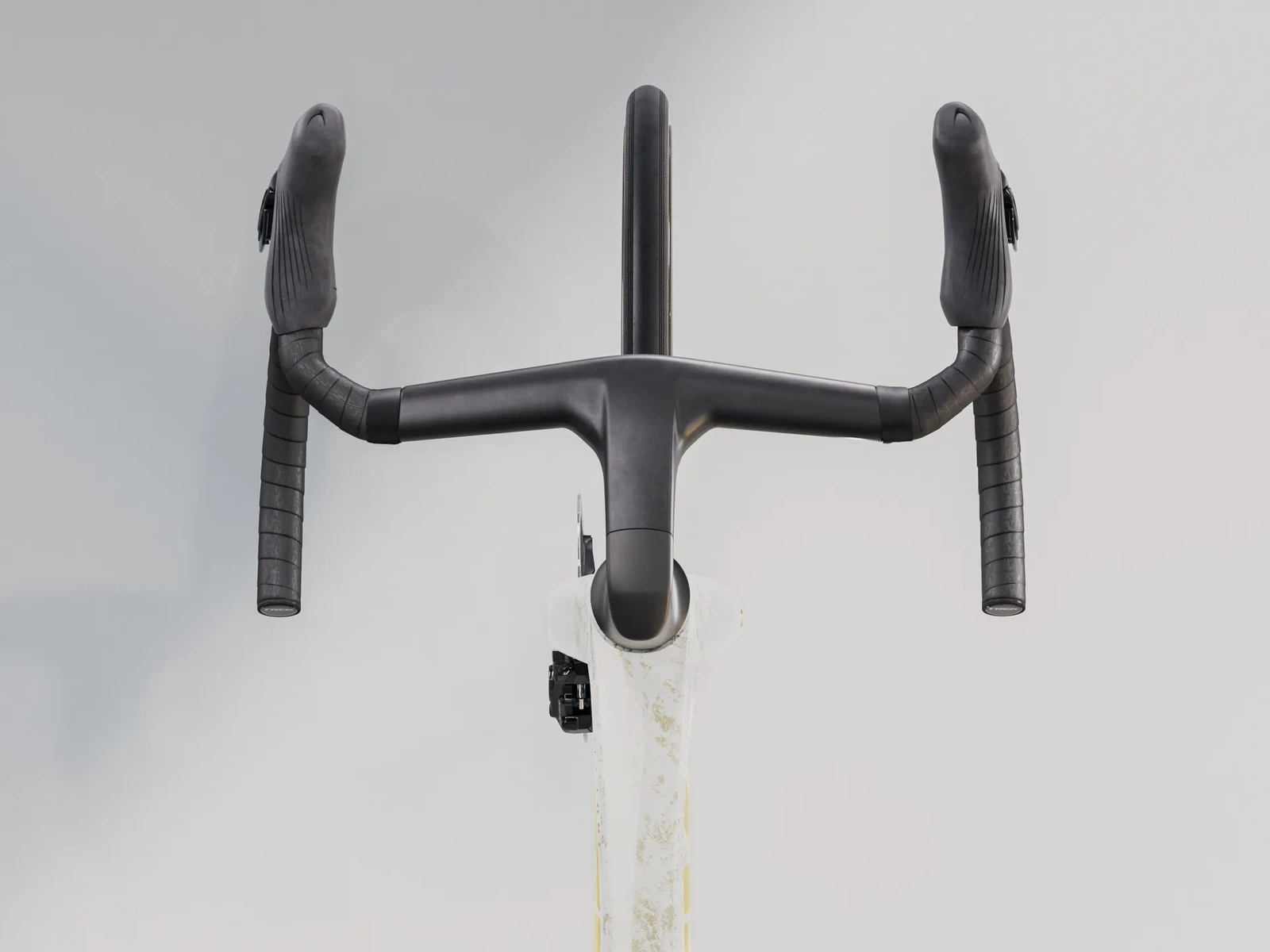 Zintegrowana kierownica/mostek Trek Aero RSL, włókno węglowe OCLV, dopasowanie wyścigowe, zasięg 80 mm, głębokość 124 mm, szerokość przy klamkomanetkach 37 cm, szerokość przy chwycie dolnym 40 cm, długość mostka 90 mm