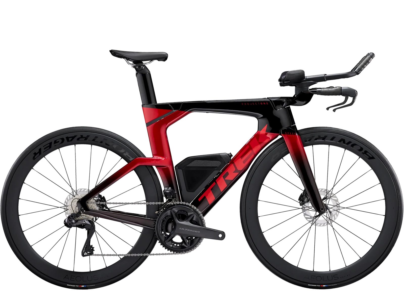 Superlekka rama z włókna węglowego OCLV Serii 800, ograniczające opory powietrza kształty rur Kammtail Virtual Foil (KVF), aerodynamiczny karbonowy widelec Speed Concept, wygładzający drogę rozdzielacz IsoSpeed, wbudowany schowek na przekąski, napoje i zestaw naprawczy, sterowany bezprzewodowo 12-rzędowy napęd Shimano Dura-Ace/Ultegra Di2, w pełni zintegrowana z mostkiem kierownica, siodełko triatlonowe Bontrager Hilo Comp dla odpowiednio agresywnej pozycji aerodynamicznej, niezawodne hamulce tarczowe i koła z włókna węglowego OCLV Bontrager Aeolus Pro 51.