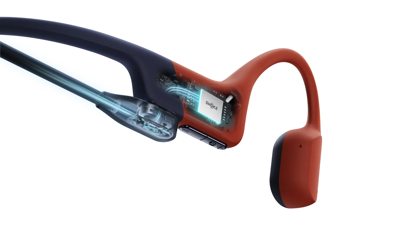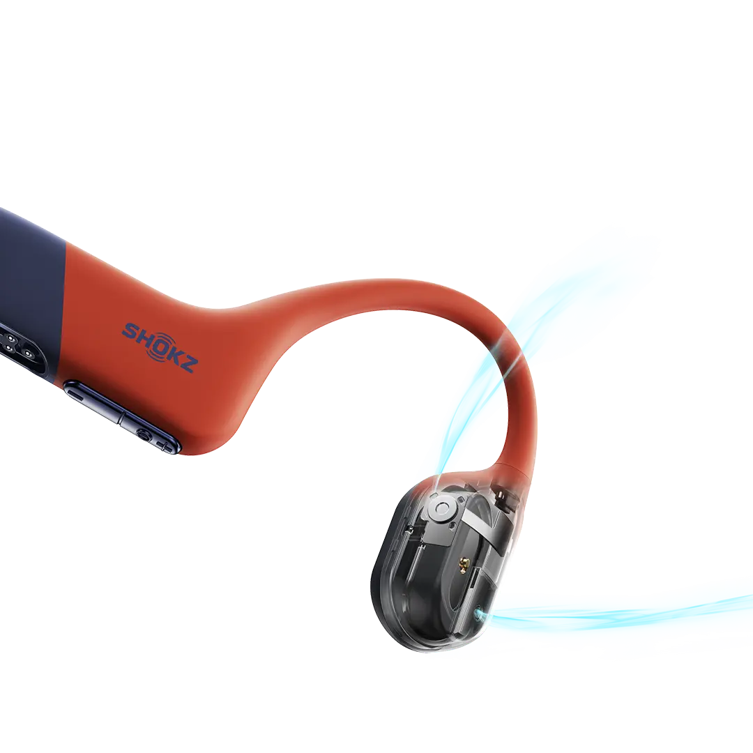 Charakterystyczny, otwarty design Shokz pozostawia przewód słuchowy odsłonięty, co zwiększa świadomość otoczenia. To rozwiązanie cenione przez pływaków, biegaczy i rowerzystów – pozwala słuchać muzyki i jednocześnie reagować na sygnały z zewnątrz.