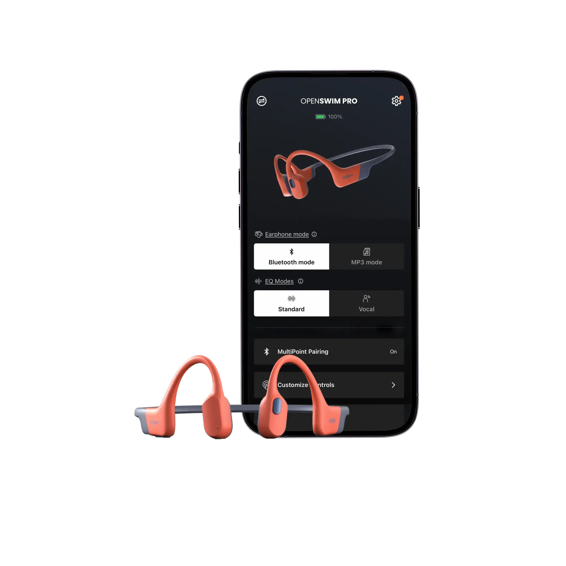 Aplikacja Shokz App daje pełną kontrolę nad Twoimi OpenSwim Pro. Możesz w niej nie tylko przełączać tryby Bluetooth i MP3, ale też zarządzać playlistami, kolejnością odtwarzania i formatami plików audio. Zyskujesz szybki podgląd stanu baterii, parowanie wielopunktowe i aktualizacje OTA – wszystko w jednym miejscu.