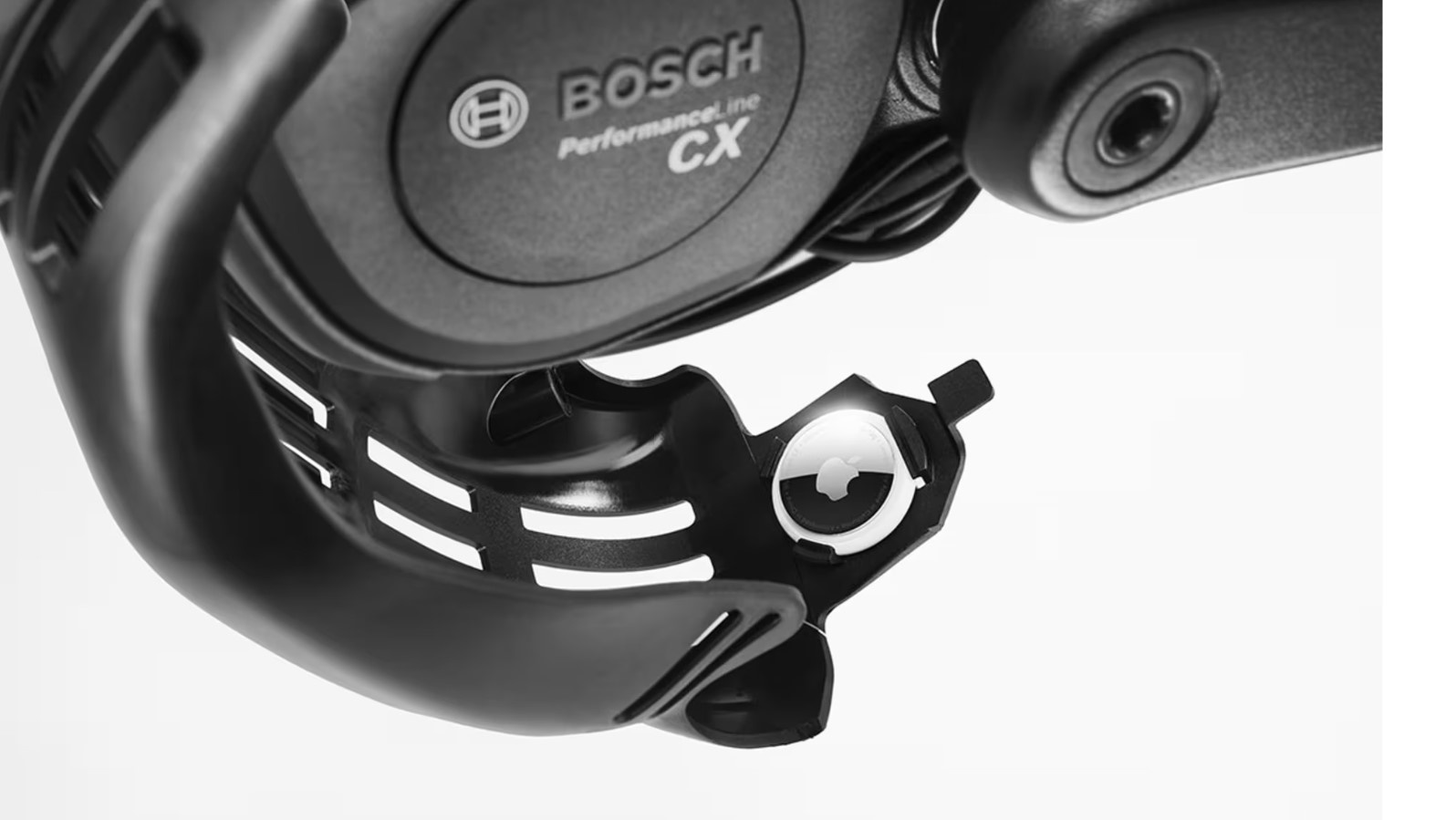 - Umiejscowienie wnęki na akumulator w pozycji 3/4 po prawej stronie ułatwia jego wyjmowanie, pozwala uwzględnić uchwyt na lokalizator Apple'a AirTag w osłonie silnika i pasuje do akumulatorów Bosch, które za pomocą AI dbają o jak najdłuższe działanie.