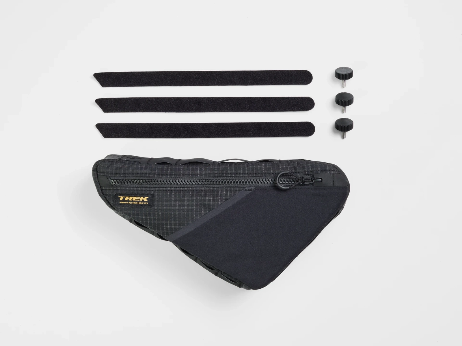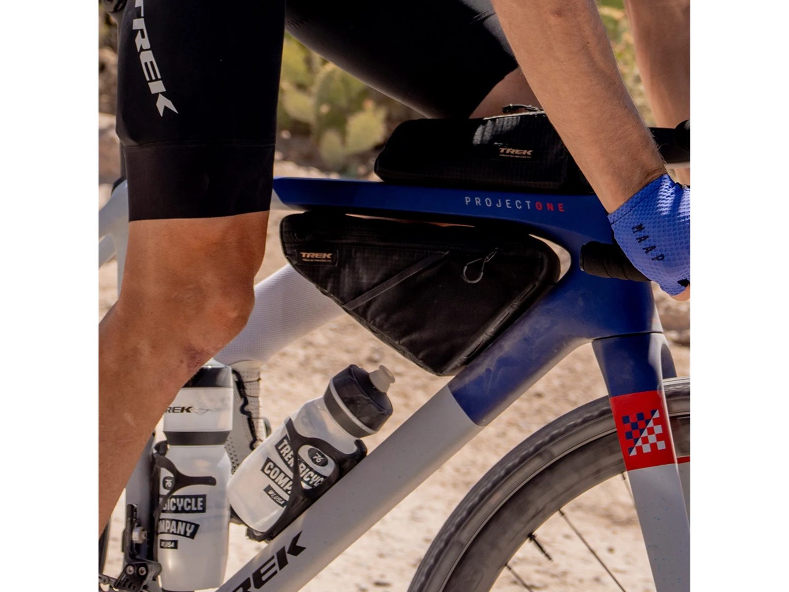 Trójkątna torba Trek Adventure umieszczona zgrabnie za główką, w profilu ramy, oszczędza przestrzeń, dzięki czemu można przewozić ekwipunek i nadal mieć miejsce na bidon. Jeśli jeździsz długie dystanse lub posiadasz małą ramę, ta torba to idealny towarzysz podróży, niezależnie od trasy.
